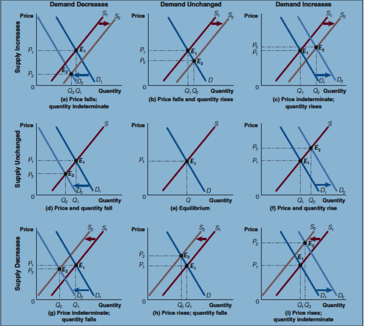 A shift in supply and and demand causes a change in the quantity and price. One is always the indeterminate.