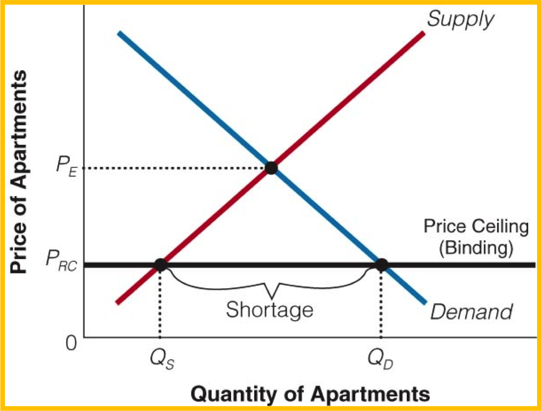 A price ceiling sets the maximum price that can be charged for a good, like rent control…