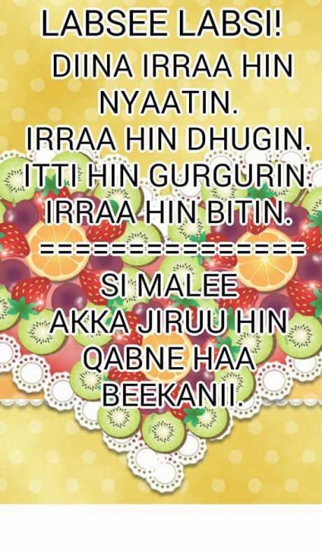 Oromia: #OromoProtests: Gabaasa Fincila Xumura Garbummaa (FXG) Oromiyaa 2016 (August) » Diina irra hin bitiini, itti hin gurguriin. #OromoProtests. September 2016