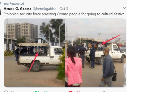 The Ethiopia’s government military detained and attacking masses of the Irreecha Oromo revellers in Bishooftuu 4 October 2020