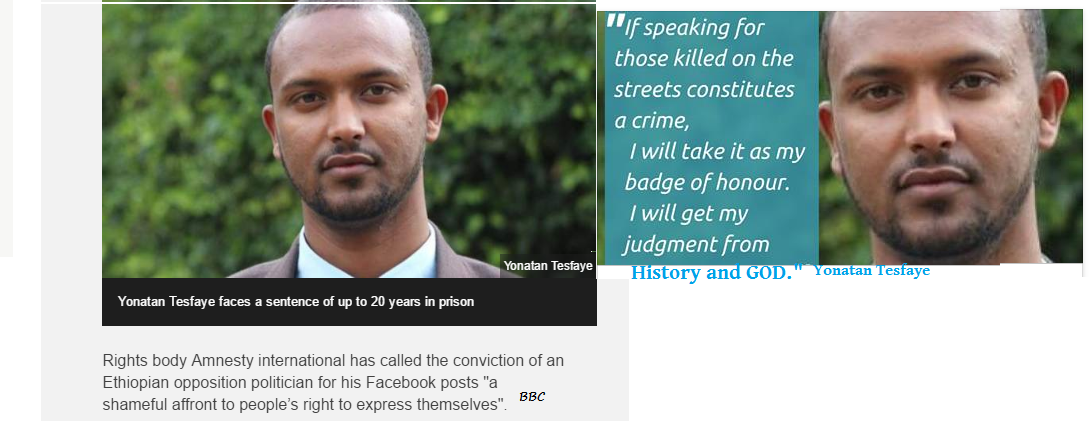 On May 25, Yonatan Tesfaye was sentenced to six years and three months in prison for “inciting” antigovernment protests in nine Facebook updates.