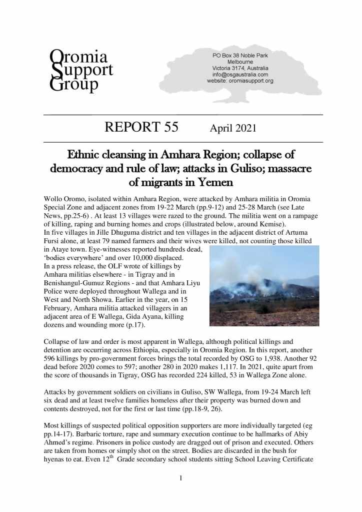 (Metekel, 14 November 2020) 52 Oromo nationals slaughtered, 17 wounded (in critical conditions) and 18 kidnapped (their whereabouts unknown) by extremist/terrorist Amhara militias organised by Ethiopia’s deputy PM Demeke Mekonnen and illegally operating in Metekel (Benishangul Gumuz state). From one family alone 6 people murdered by this Oromphobic group.