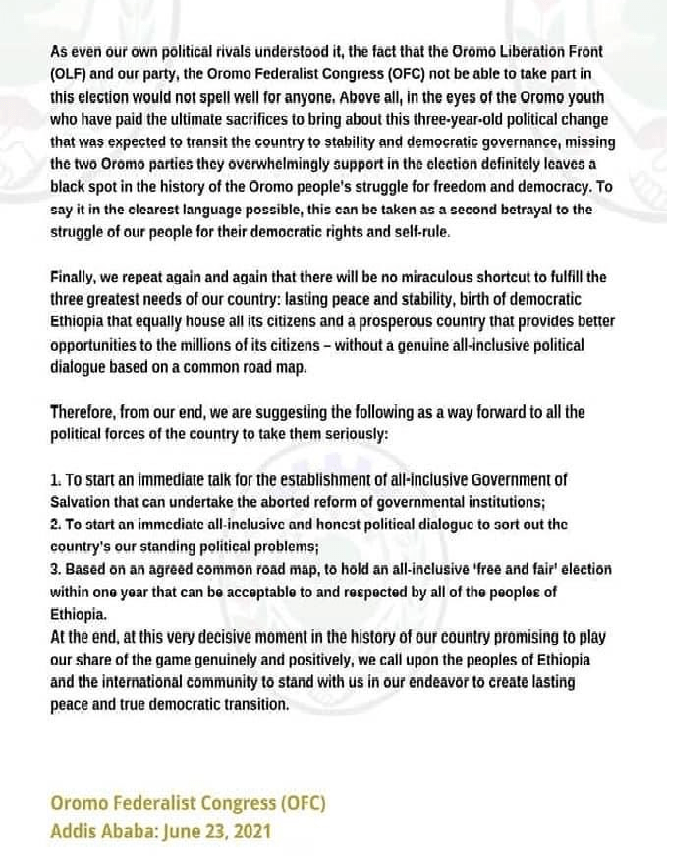 At the OFC, we firmly believe -as always-that nonviolent struggle and an all-inclusive dialogue remain Ethiopia’s best hope to successfully transition into a democratic order, ensure enduring stability and achieve sustainable development, and are committed to abiding by these principles. It has worked for us in the past. We hope it serves us better in the future as well.