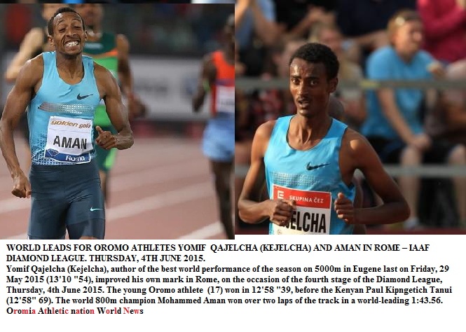 WORLD LEADS FOR OROMO ATHLETES YOMIF QAJELCHA (KEJELCHA) AND AMAN IN ROME – IAAF DIAMOND LEAGUE. THURSDAY, 4TH JUNE 2015.