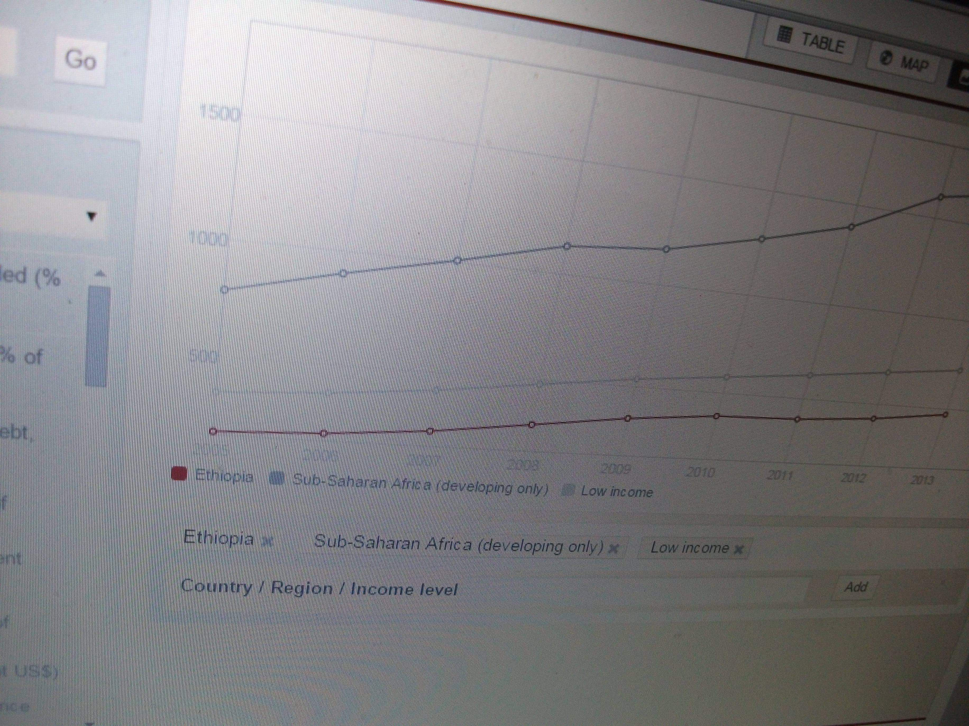 Sub-Saharan African countries are the poorest regions of Africa and the world. The World Bank’s Per Head Income trend from 2005 shows that Ethiopia’s trend is by far below Sub-Saharan Africa average trends with constantly widening gap. With Per Capita Income of below $500 throughout the trends, World Bank data shows that Ethiopia’s trend has been below the averages of world’s low income countries. So, what is the point of Ethiopia’s ‘fastest growth’ hype?