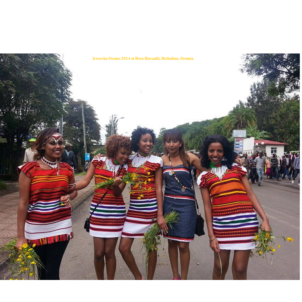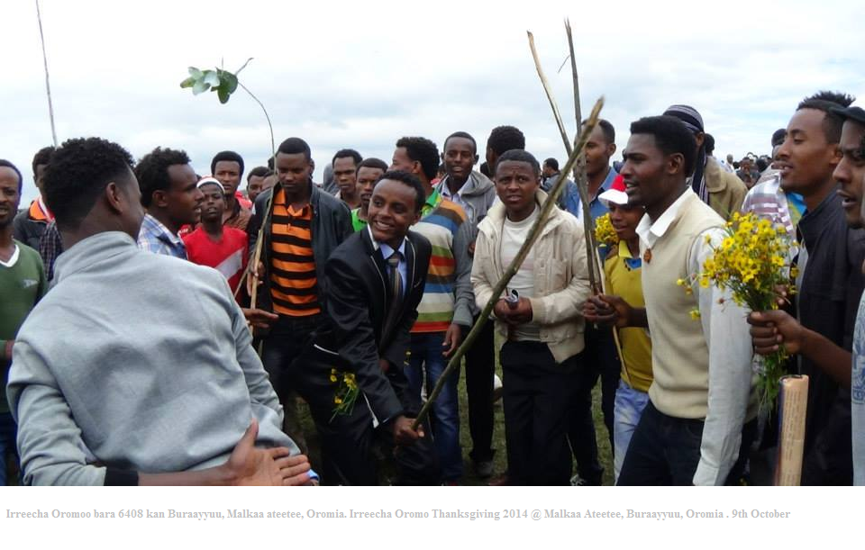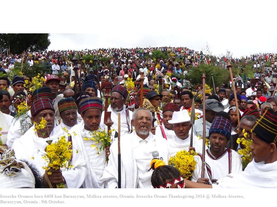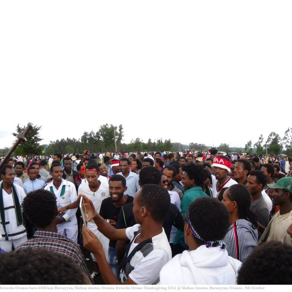 Irreecha (Irreessa) Birraa Oromoo kan Bara 2014 ((akka lakkoobsa Oromootti kan Bara 6408) akka gaariitti karooreffatamee, haala oo’aa fi bareedan kabajame. Here are some of live pictures, videos and reports refer to Irreecha Oromo Thanksgiving 2014 (6408 in Oromo Calendar) Season Global Events Planning and Celebration. The blessing event that started in mid August and celebrated successfully and colorfully through Birraa (September- October). Millions attended Hora Harsadi (Bishoftuu, Oromia) and Malkaa Ateetee (Buraayyuu, Oromia).