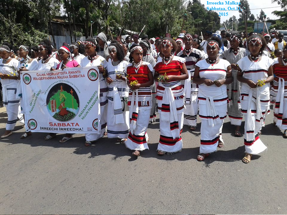 AD – In my view, Meskel and other externally imposed religious rituals were deliberately and systematically designed to subdue the Oromo traditional rituals including Irreecha. These [religious] rituals have overshadowed the Oromo festivities not because the latter ones were irrelevant to the Oromo but because the Oromo were coercively reduced to the level they would not preserve and protect their cultural and religious rituals openly. These imported religious and cultural rituals have no space to entertain anything Oromo. The Oromo were utterly denied to express what they believed in. When the Oromo said they believed in Waaqaa (God), the imposed religions did not want to accept and rather openly preached that the Oromo were worshipping false gods, trees, rivers, mountains, etc. Defamation and humiliation of the Oromo indigenous religion were the strategies consistently pursued. The Oromo were in a difficult position to fully accept and integrate themselves into these exotic religions. However, as subject people, they had no option but to practice what ‘their supposed masters’ told them to do. As the time passed, the Oromo began to assimilate to these imposed rituals and started to attend their festivities. When opportunity opens up following the fall of the military regime in 1991, the Oromo did not take time to begin revitalizing their traditional rituals such as Irreecha.